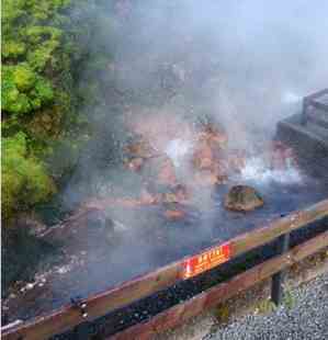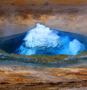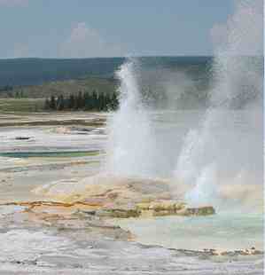 Geysers, the result of volcanic action beneath the surface, under pressure, spray primary water into the air, and bubble to the surface. Hotsprings, often found in mountainous areas, spring forth from cracks, and fissures, fractures, caused by intense pressure built up by steam and water within the rock strata.